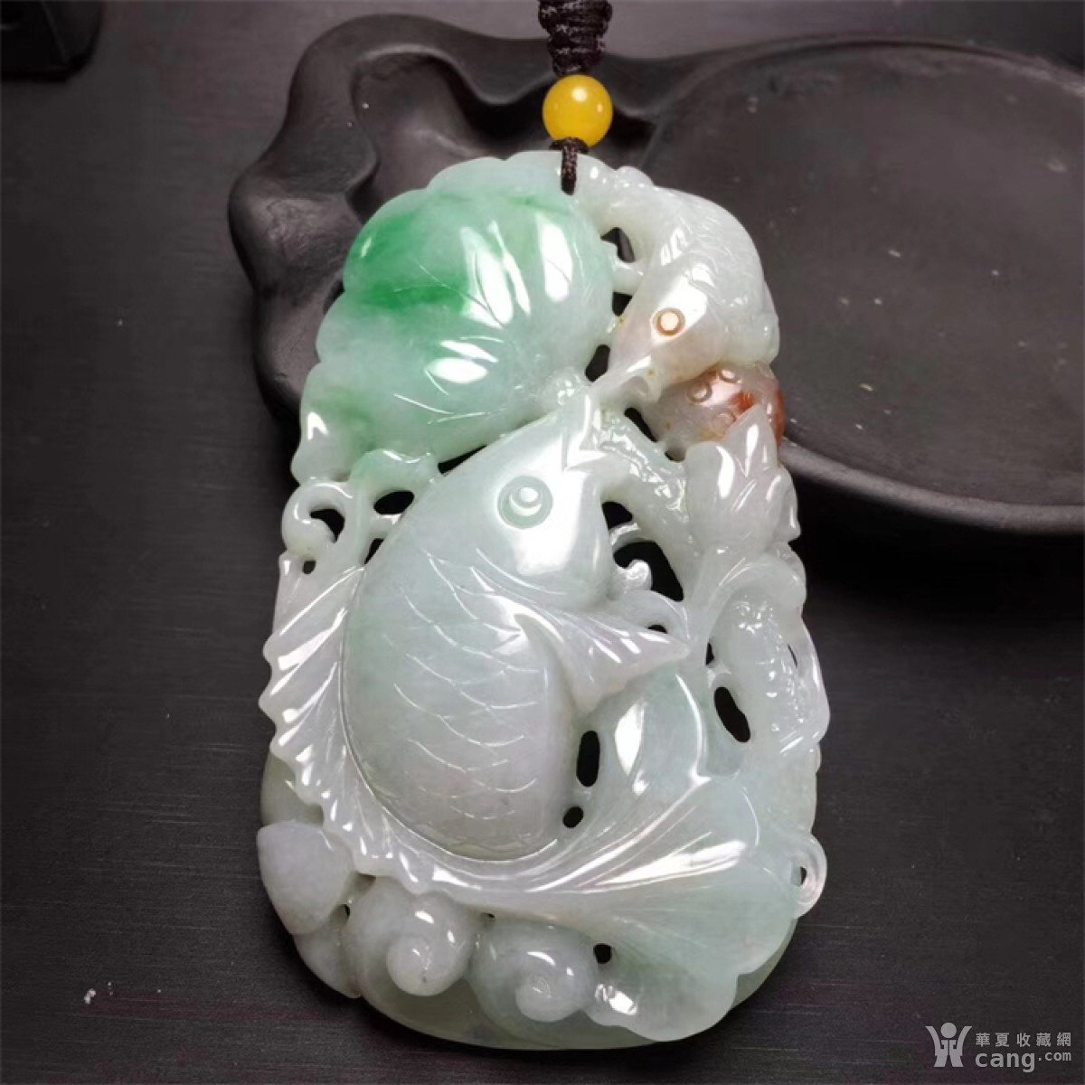 a12创汇期细糯种飘阳绿巧雕翡翠 连年有余 挂佩