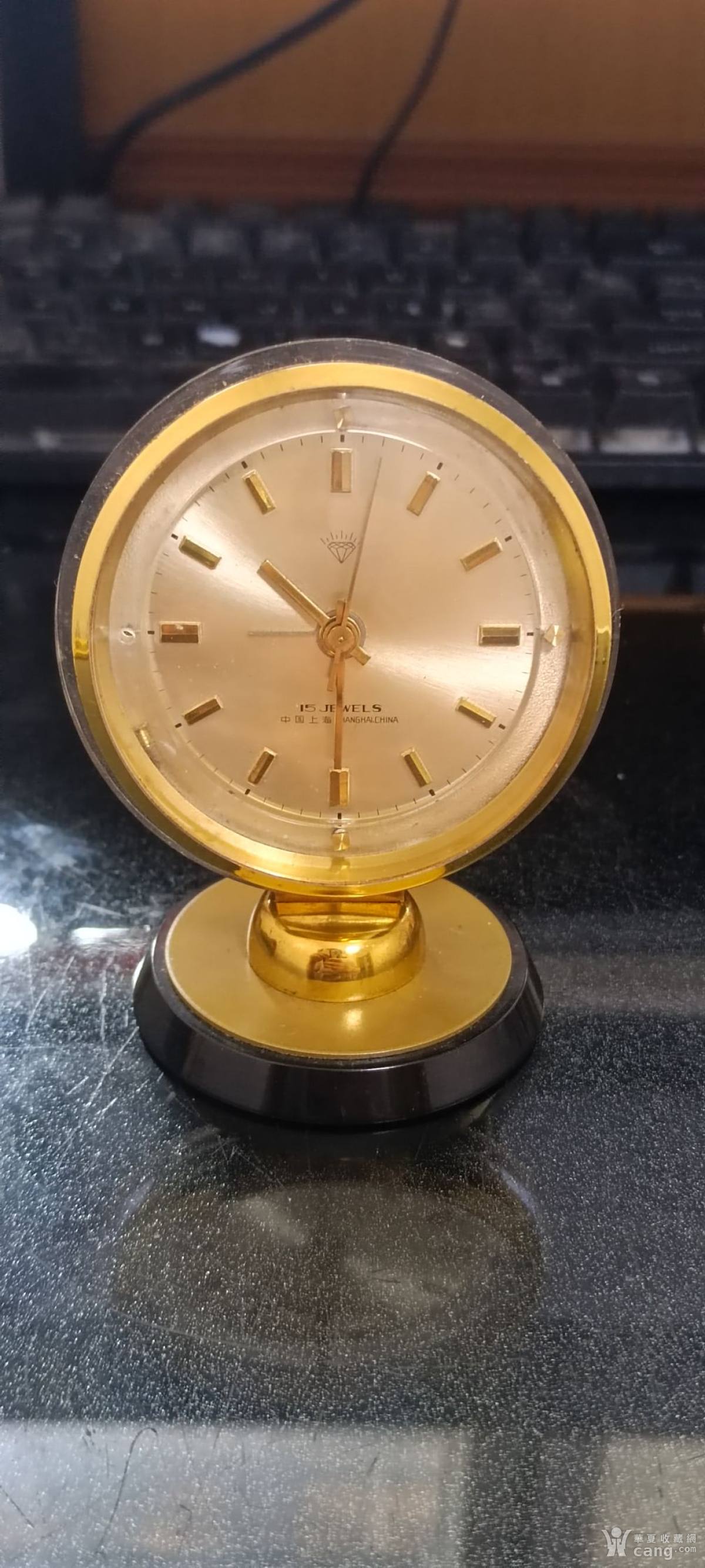 稀少品==国表早期==上海钻石15钻==小圆台式闹钟古董钟表