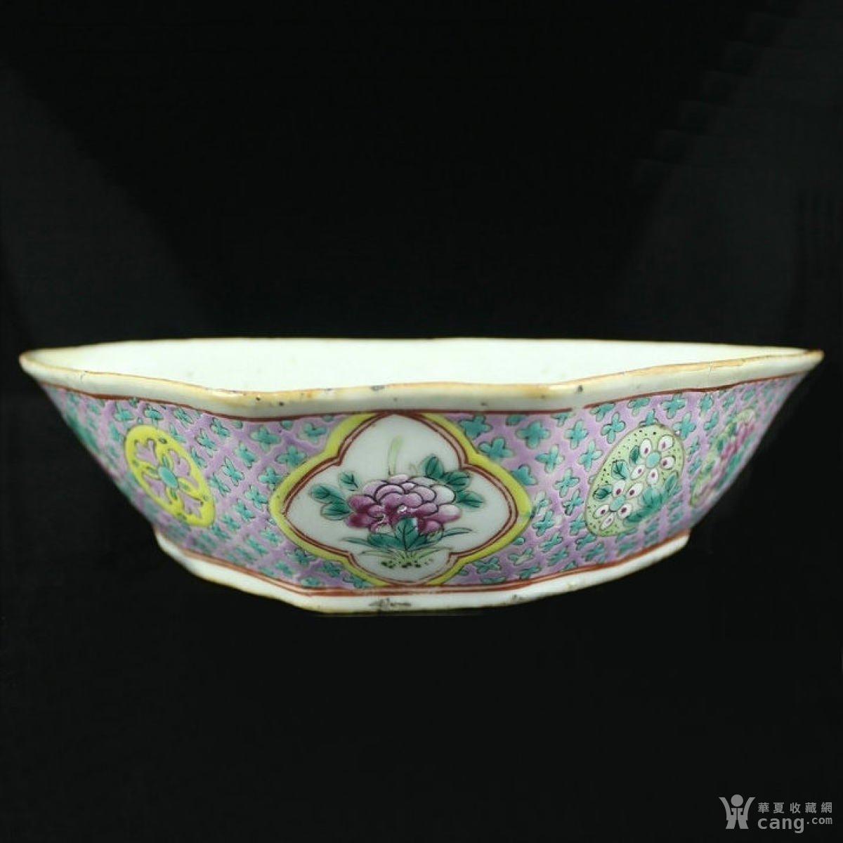 【海外回流】晚清四叶草粉彩花卉三角什景果盘