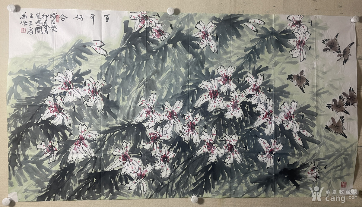 六尺整张【保真】王孝华6尺中堂花鸟画百合花锦鸡7《百年好合》