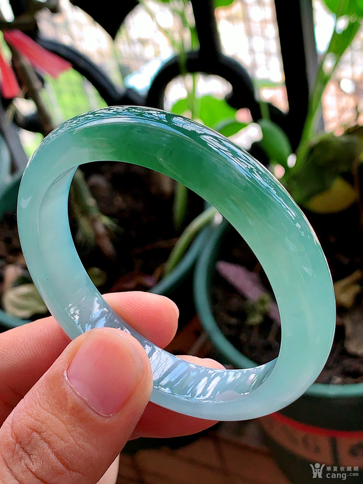 缅甸天然翡翠A货冰透水润飘花宽边手镯57圈口