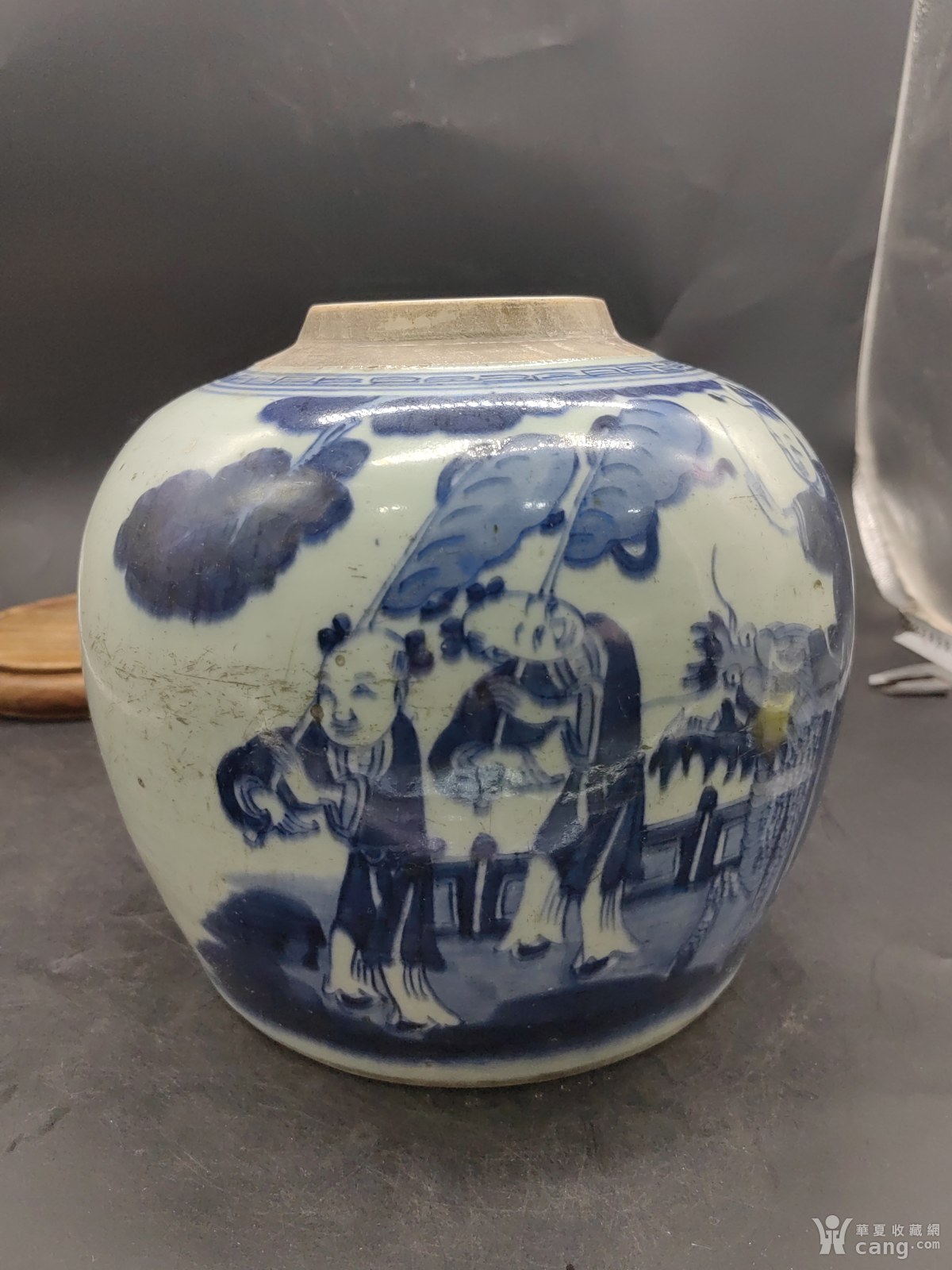 清代人物青花罐