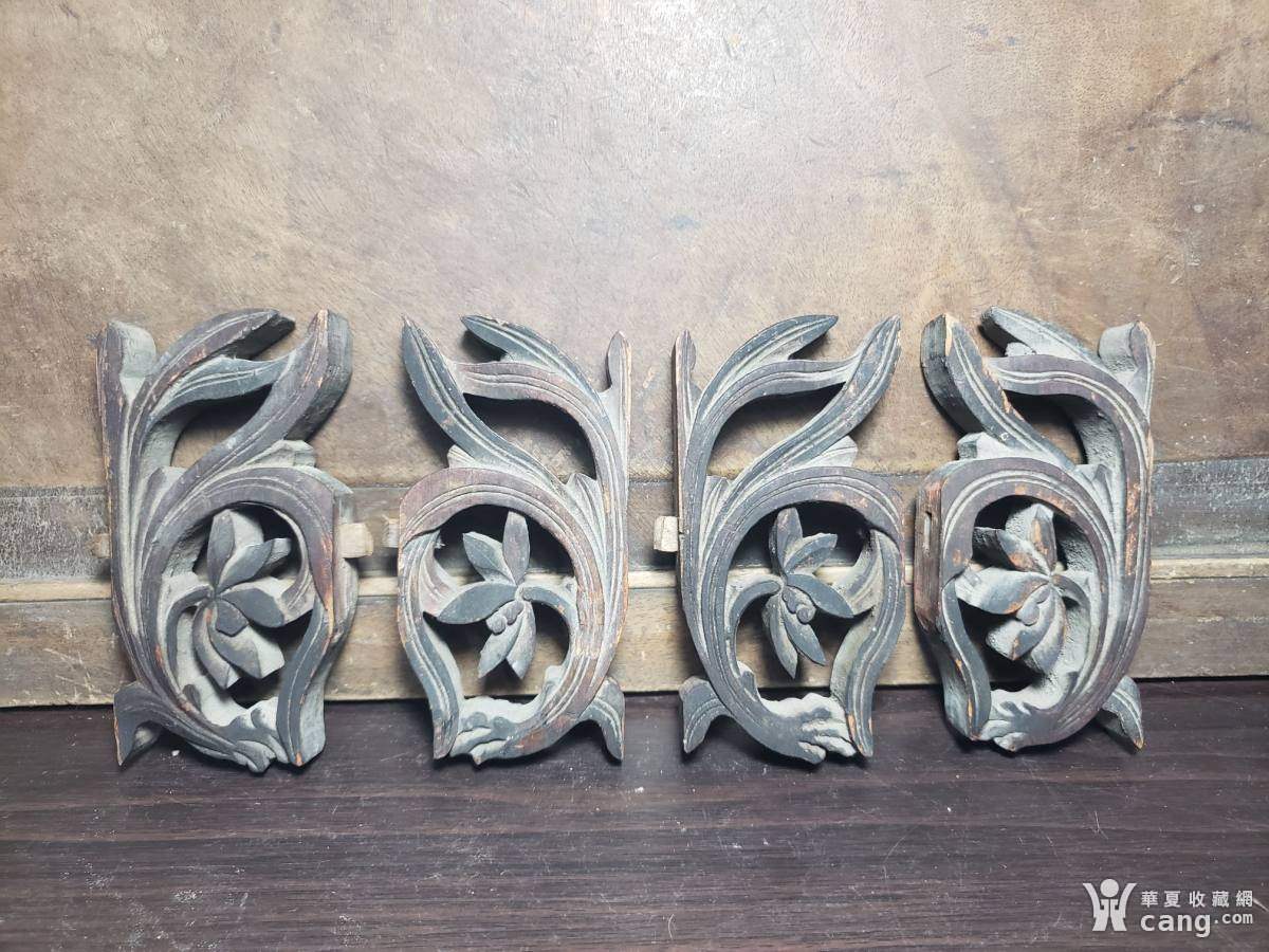 雕兰花图杉木花节四件,清代