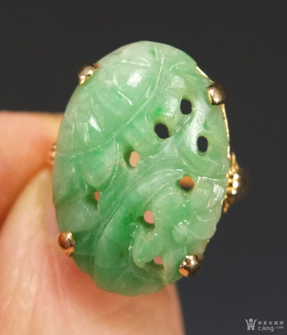 海外回流—14K金镶嵌天然A绿翡翠镂空雕——戒指