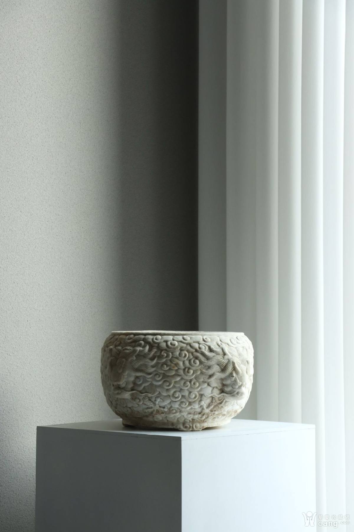 雅室陈设 |龙首祥云纹石盆 清代,尺寸:直径46,高25,