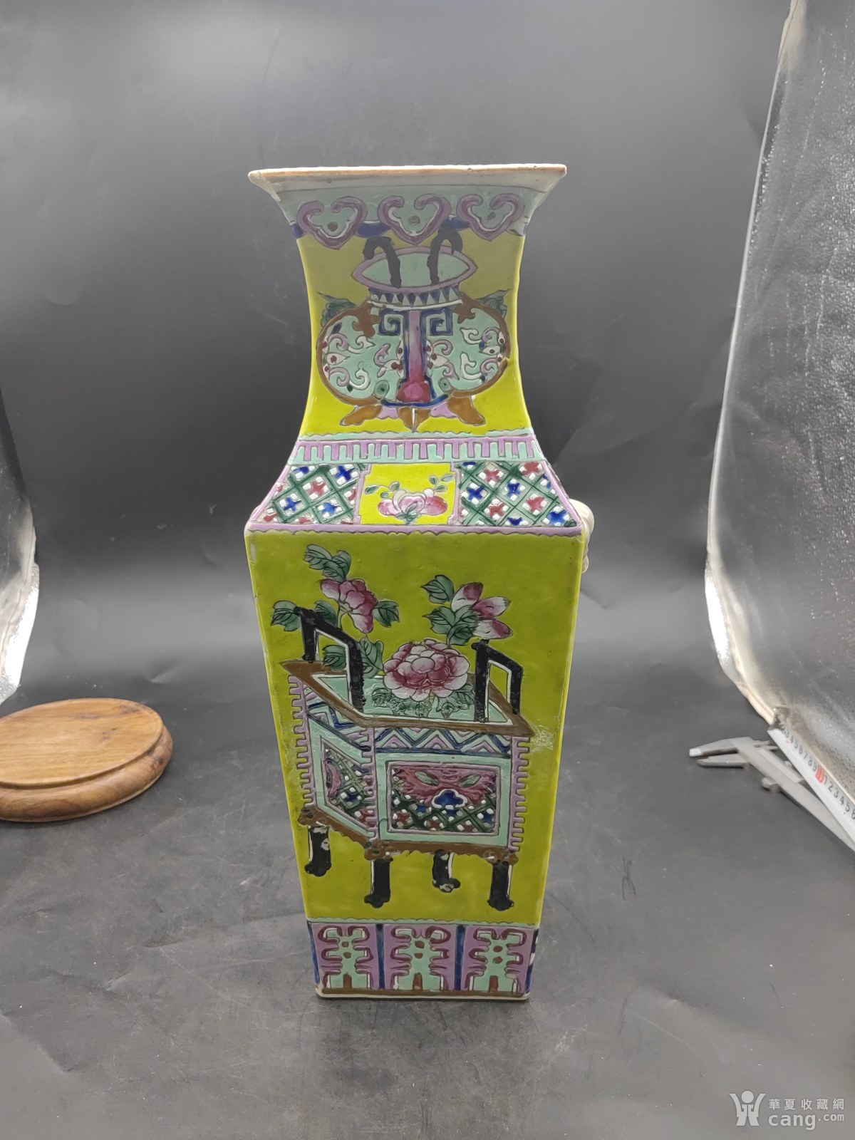 清代黄釉清供兽耳四方瓶