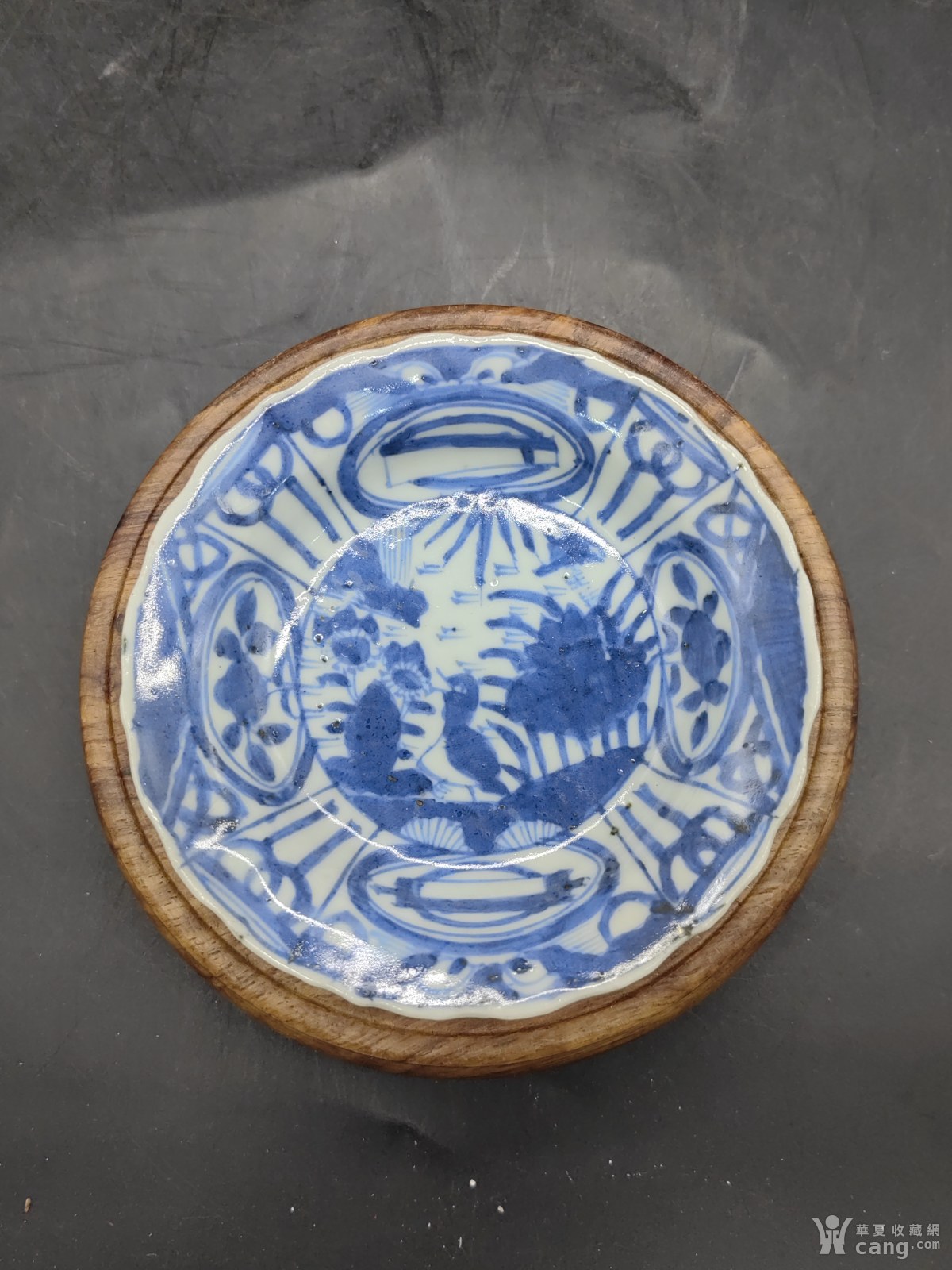 青花花卉花口盘