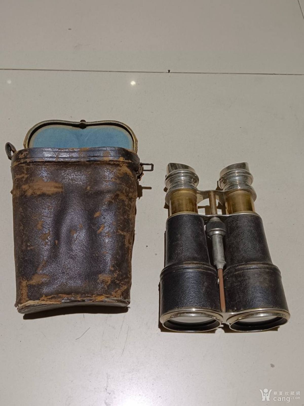 二战时期国外望远镜,原装皮盒,整体采用铜鎏银材质,个头大,品