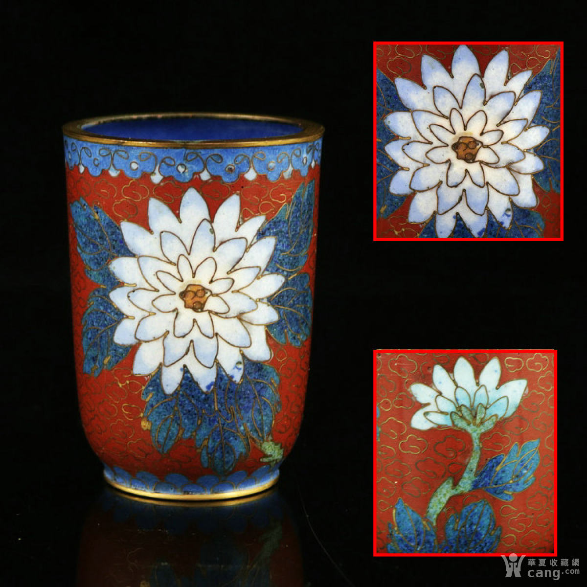 【海外回流】创汇时期富贵牡丹铜胎掐丝珐琅闻香杯 景泰蓝