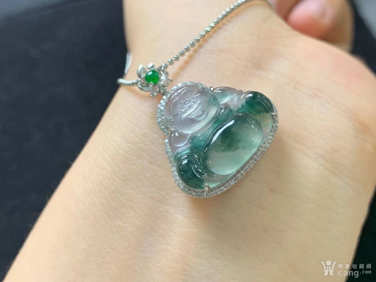 冰种飘蓝花佛公 尺寸:27.8-22.1-7.4 18K金镶
