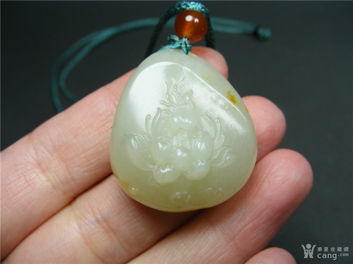 67几十年的和田带“吉祥”款浅浮雕莲花仙鹿纹饰大坠佩