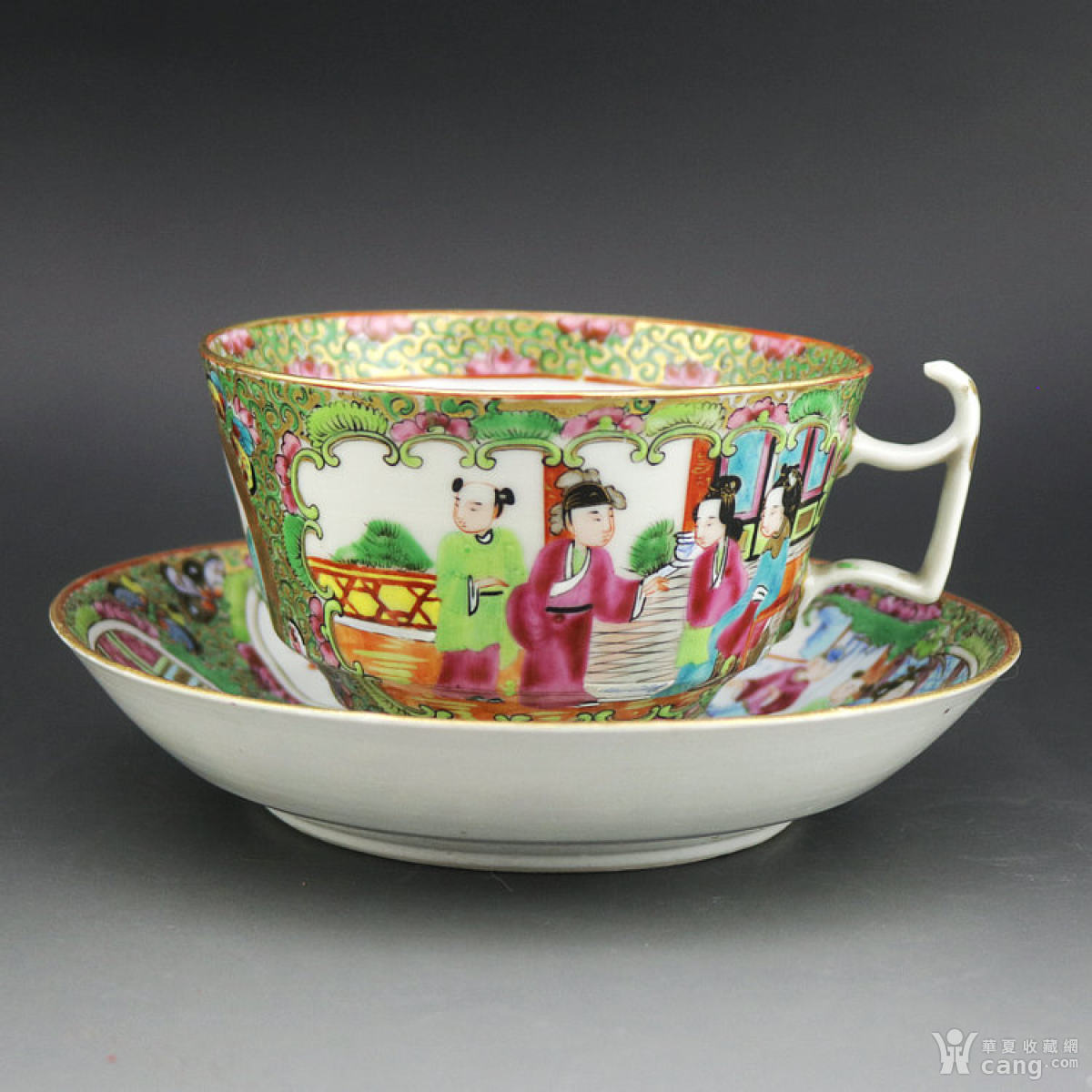 【海外回流】晚清/民国广彩人物情景蝶恋花茶杯
