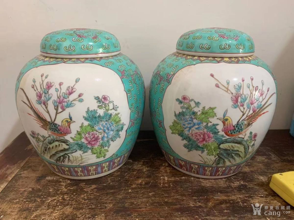 五六七花鸟盖罐一对,