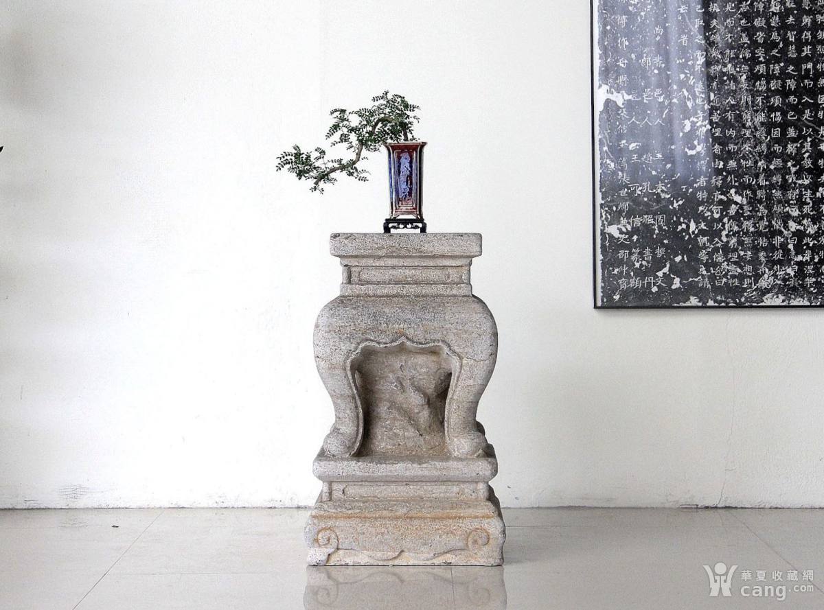庭院香几 此香几青石材质,高束腰、三弯腿制式,腿足镂空雕刻,
