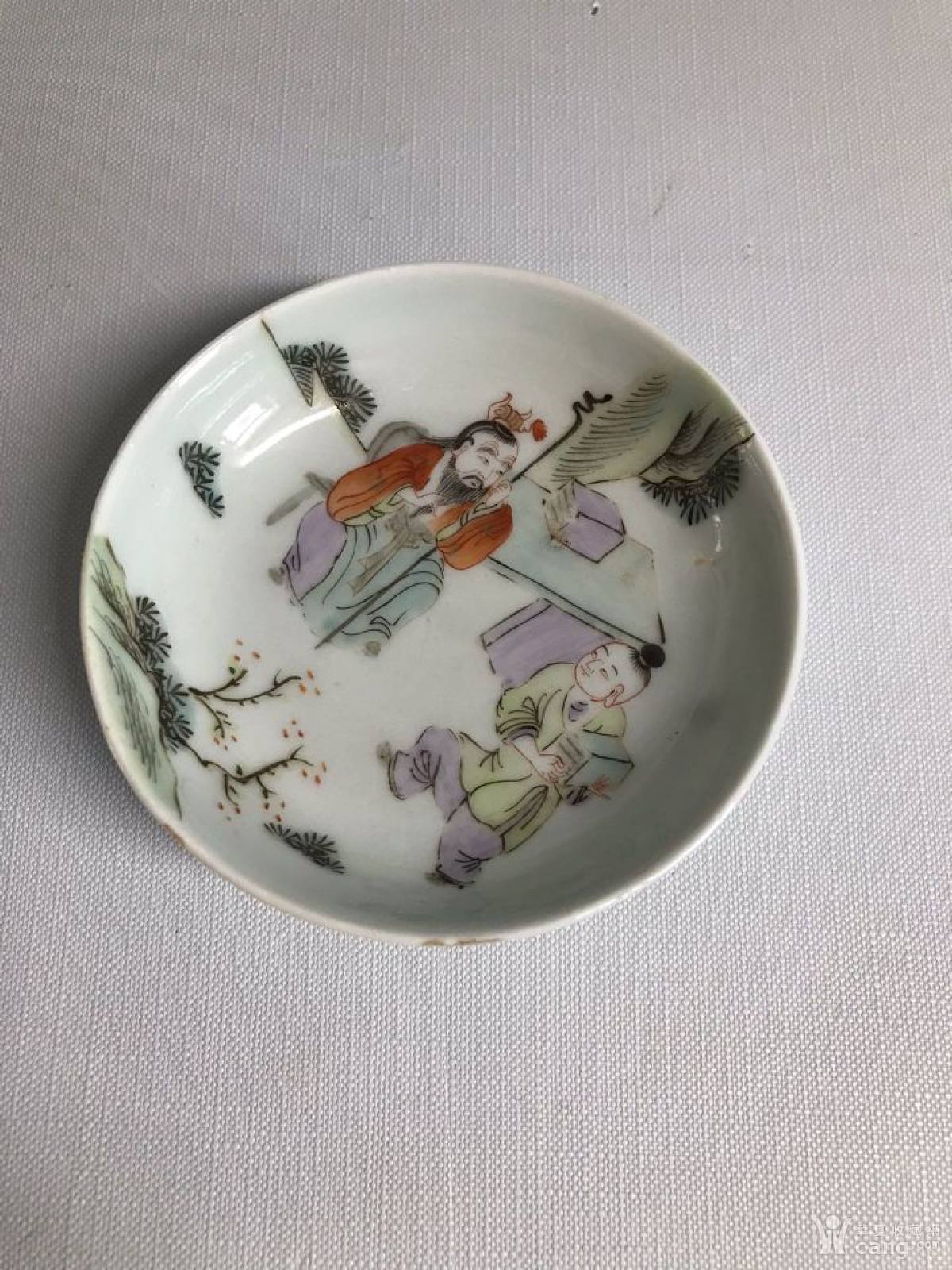 晚清粉青釉人物盘