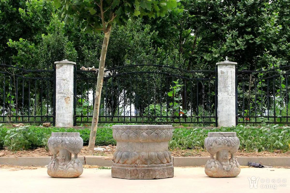 莲花石桌 整体造型上下宽,中间高束腰,上下雕刻双层莲花纹饰,
