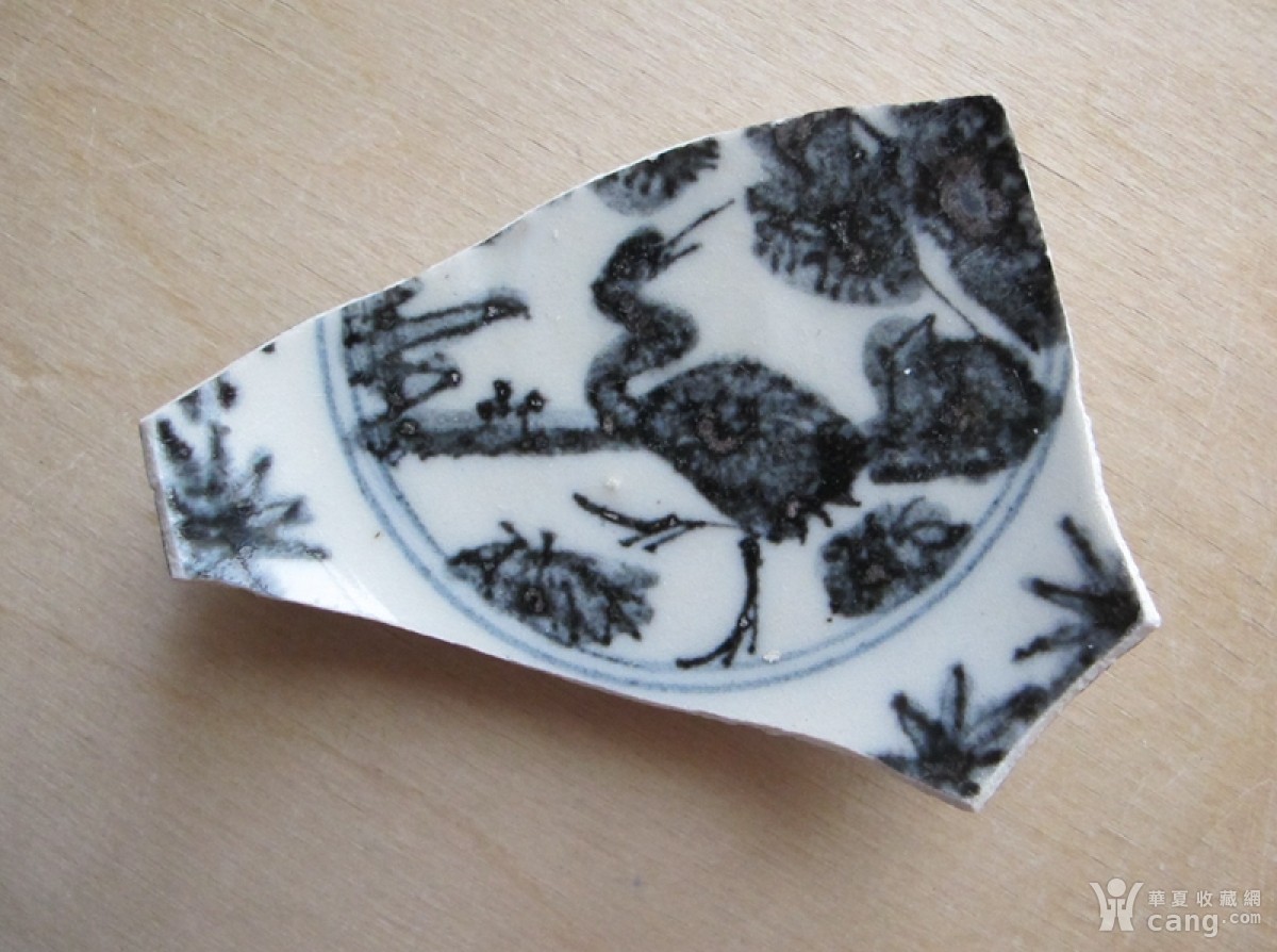 特价 明中晚期 黑青花 大立鹤 带底款 标本