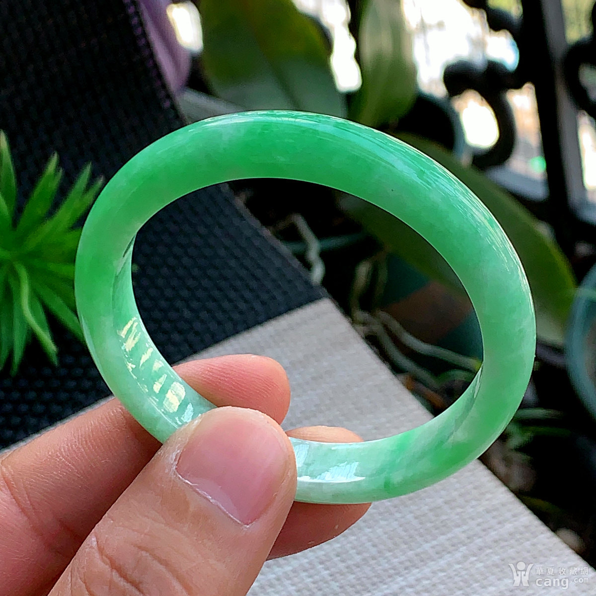 缅甸天然翡翠A货冰润飘绿宽边手镯54.6圈口