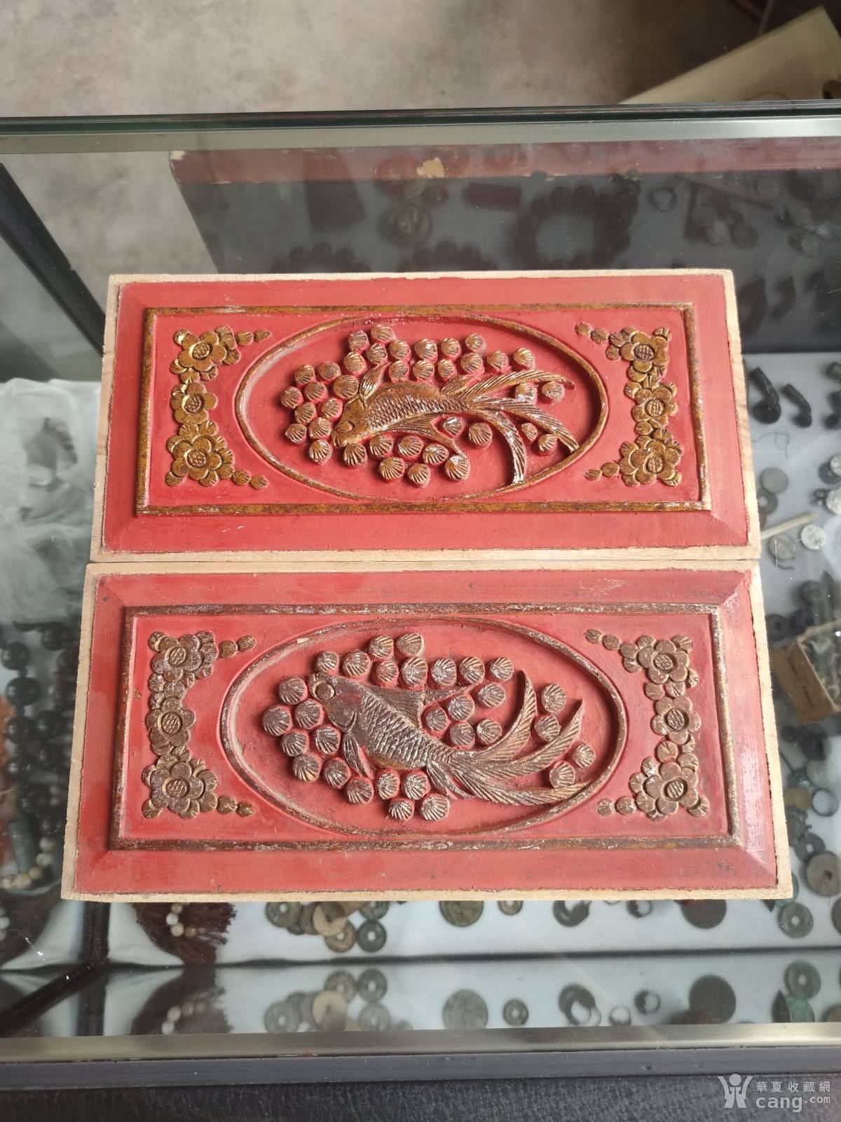 大漆描金花板一对