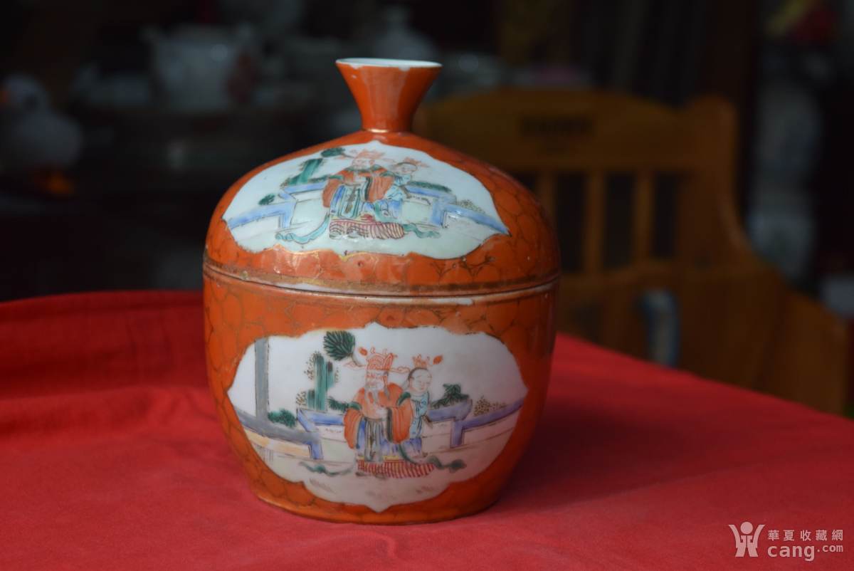 民国珊瑚红粉彩双面工人物纹执壶(包老)