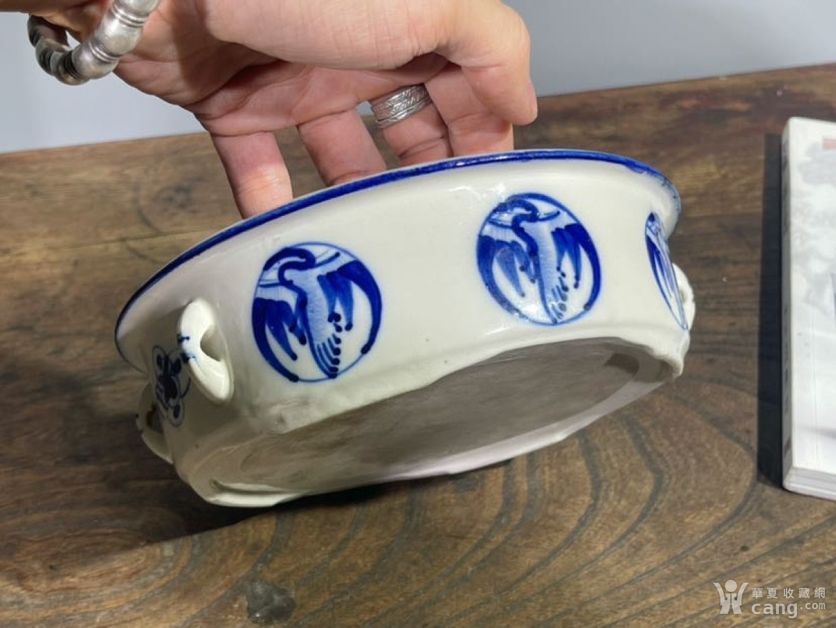 HB1358 民国青花团鹤纹饰青花缸
