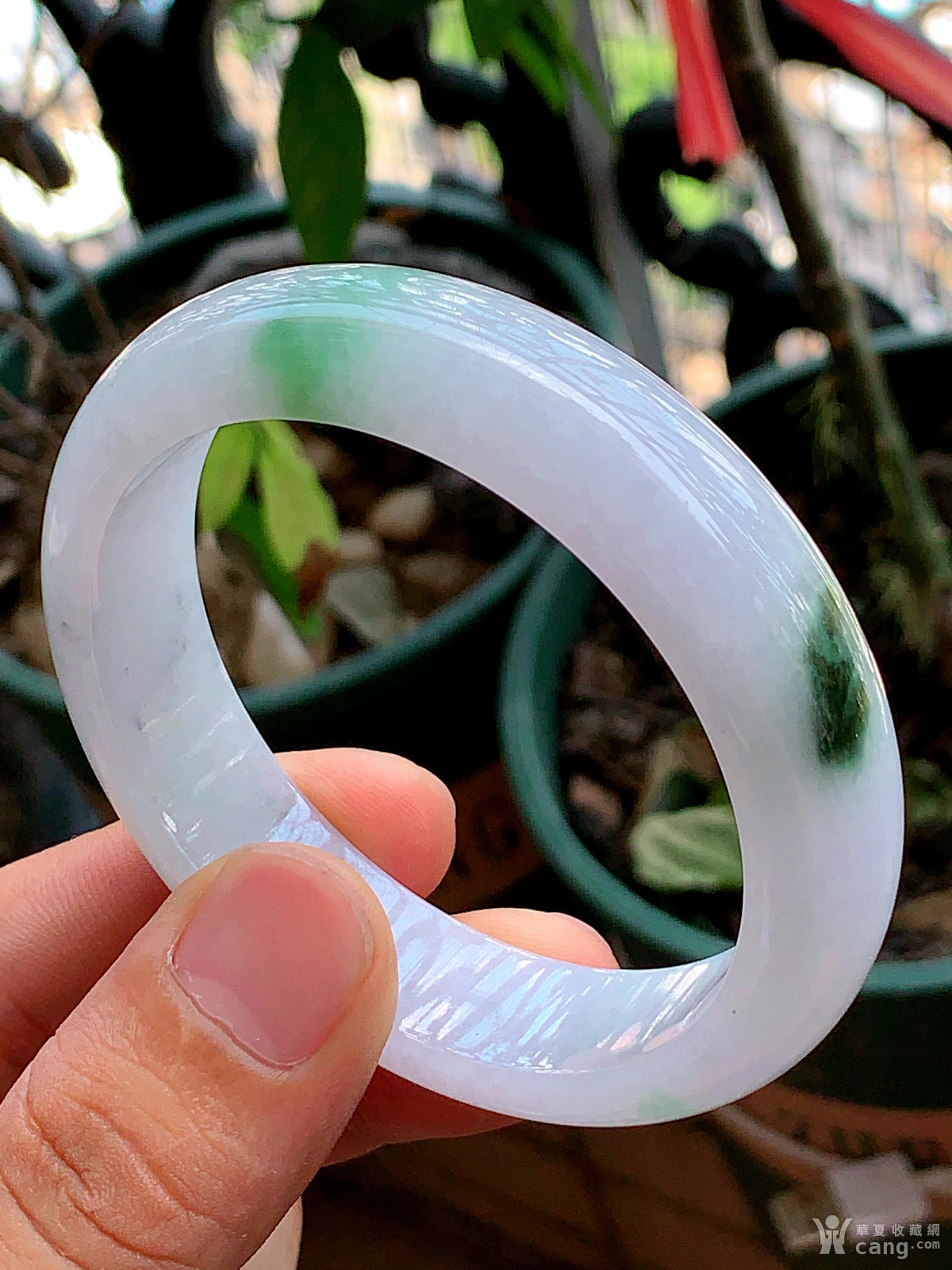 缅甸天然翡翠A货冰润飘花宽边手镯59圈口