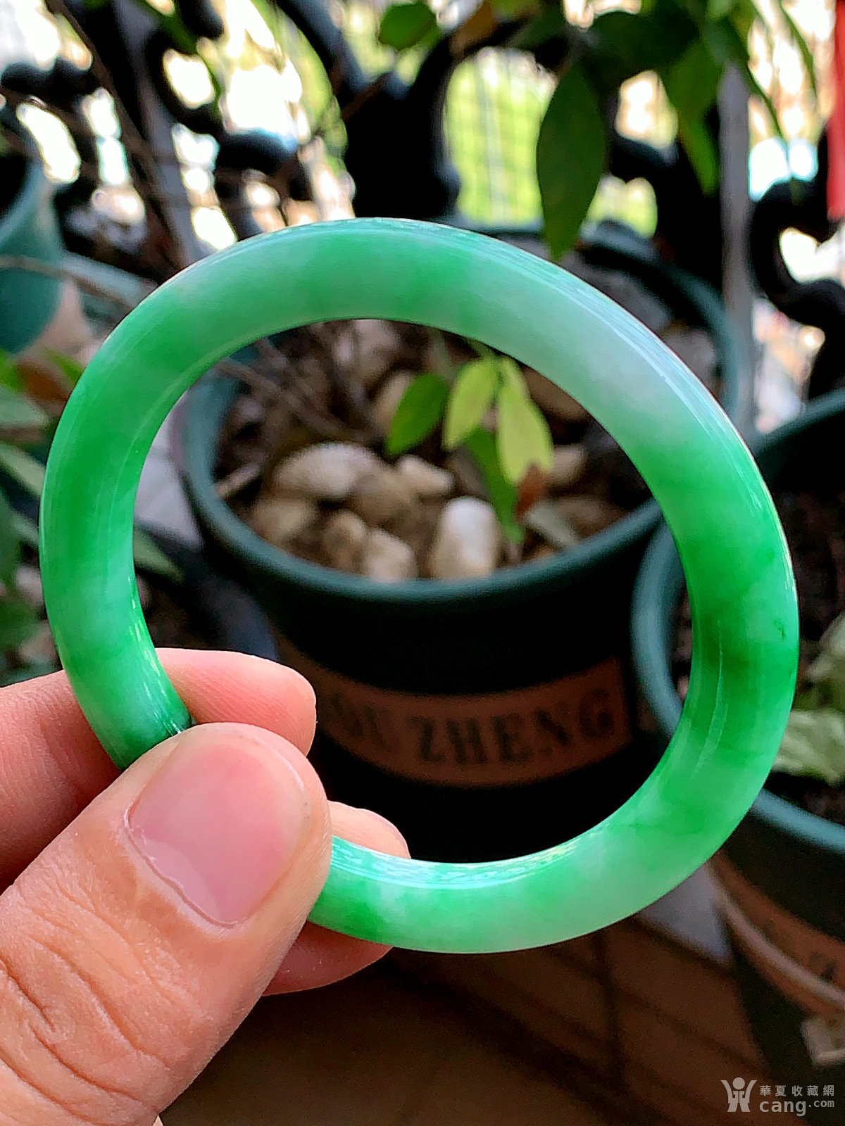 缅甸天然翡翠A货冰润飘花圆条手镯54.6圈口