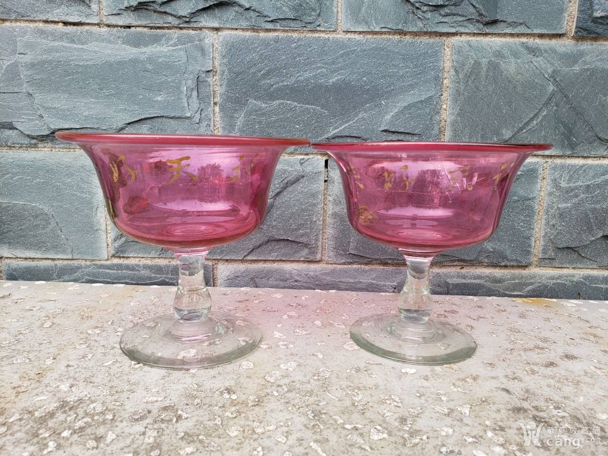 玫红色琉璃高脚盘一对,民国