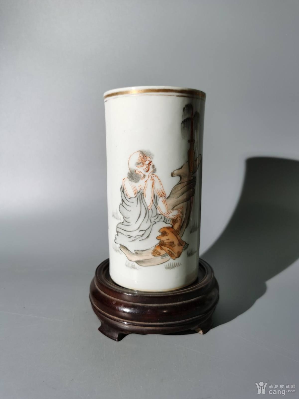 道光墨彩描金罗汉纹笔筒