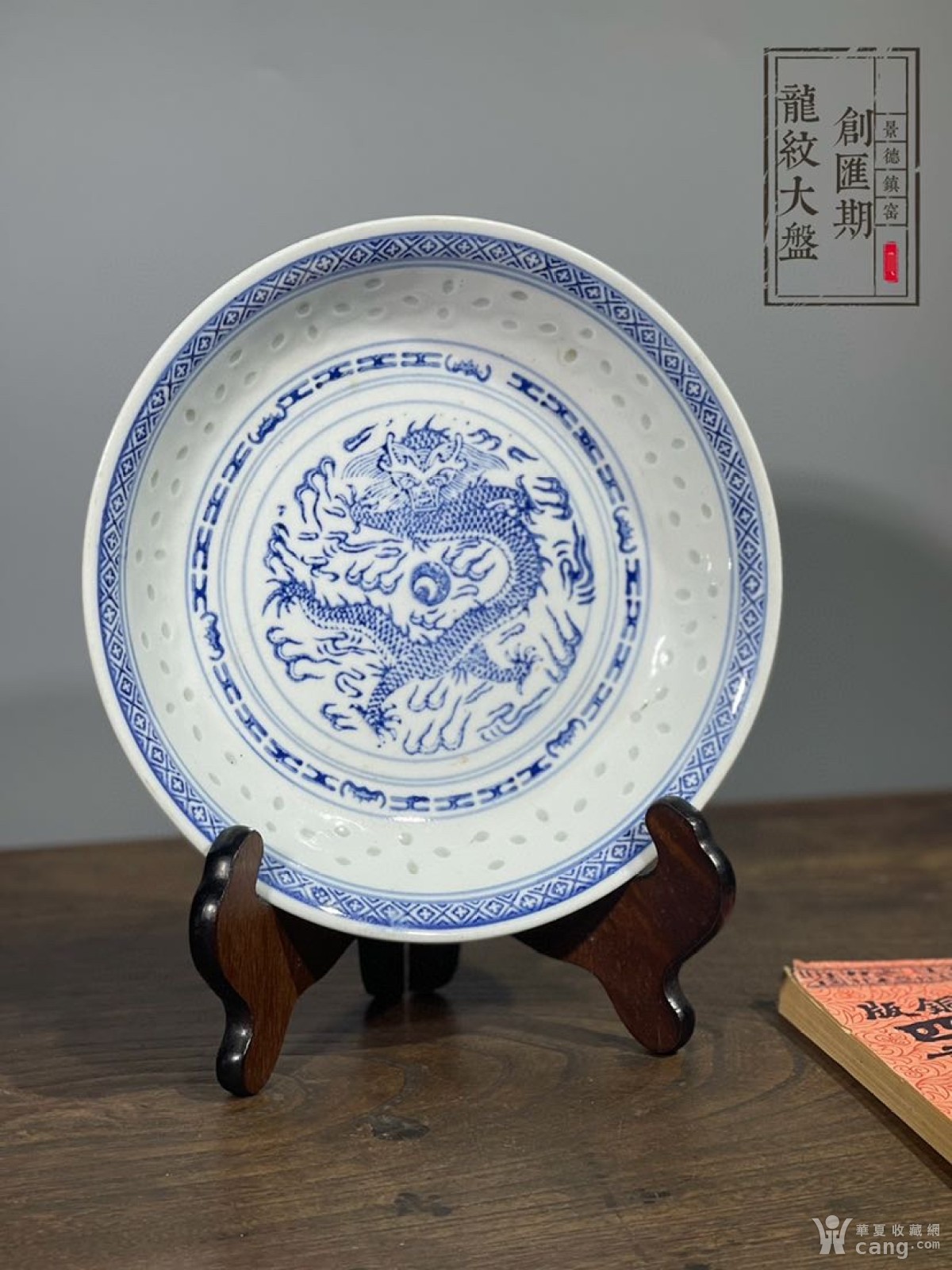 HB4279 。八十年代景德镇窑玲珑青花龙纹大盘