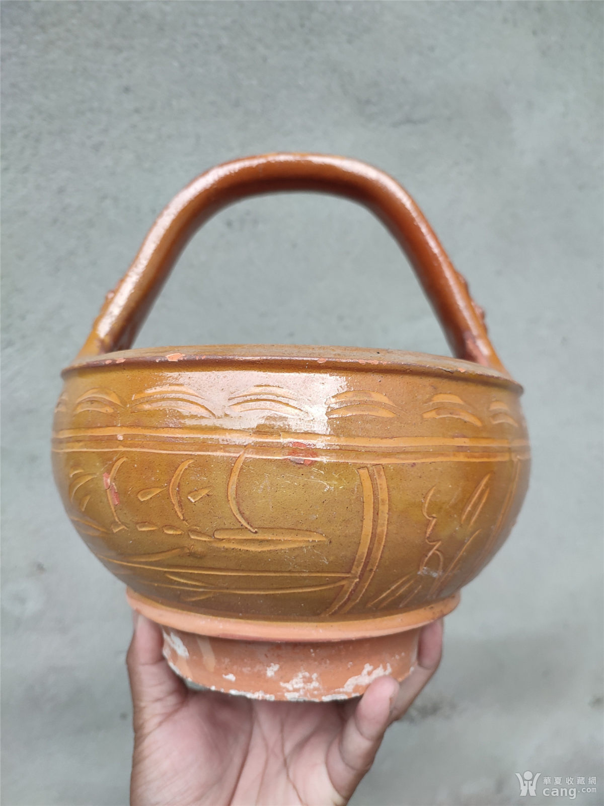 全品陶器花篮,高25厘米,直径20厘米,尺寸见图