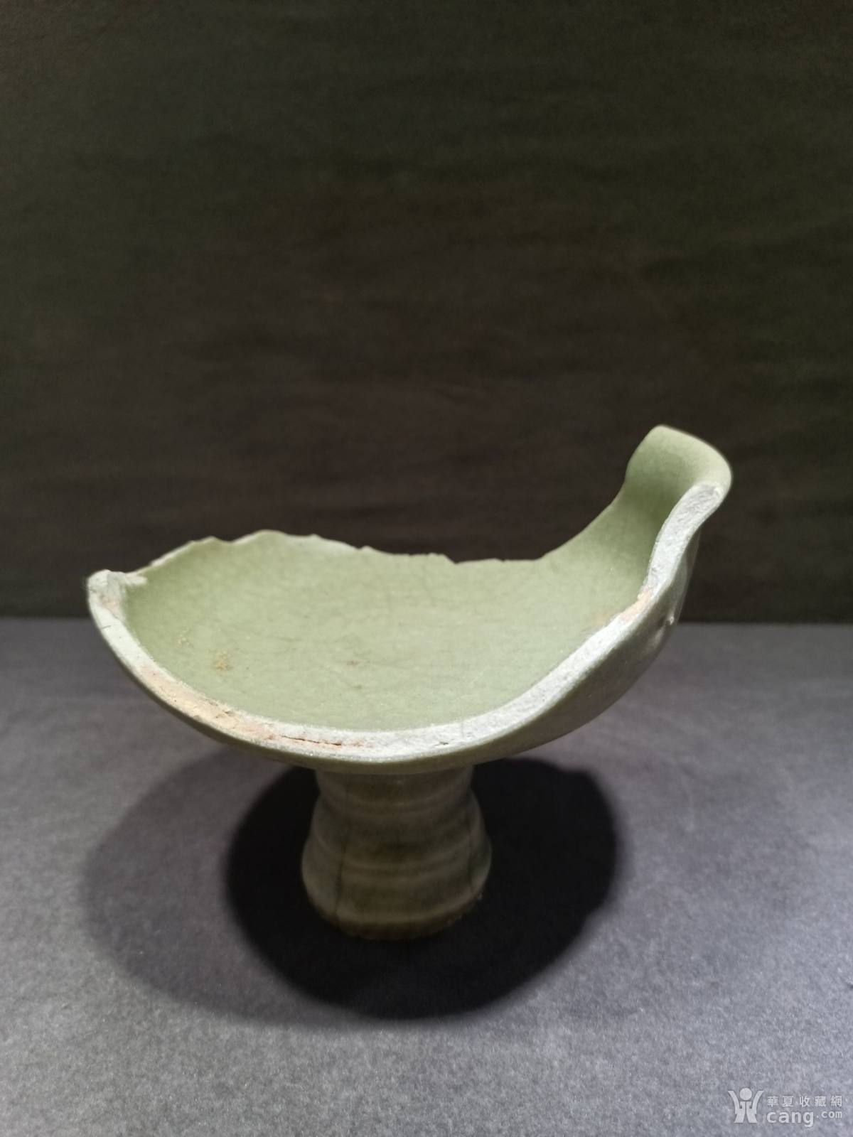 元龙泉窑青釉冰裂纹高足杯