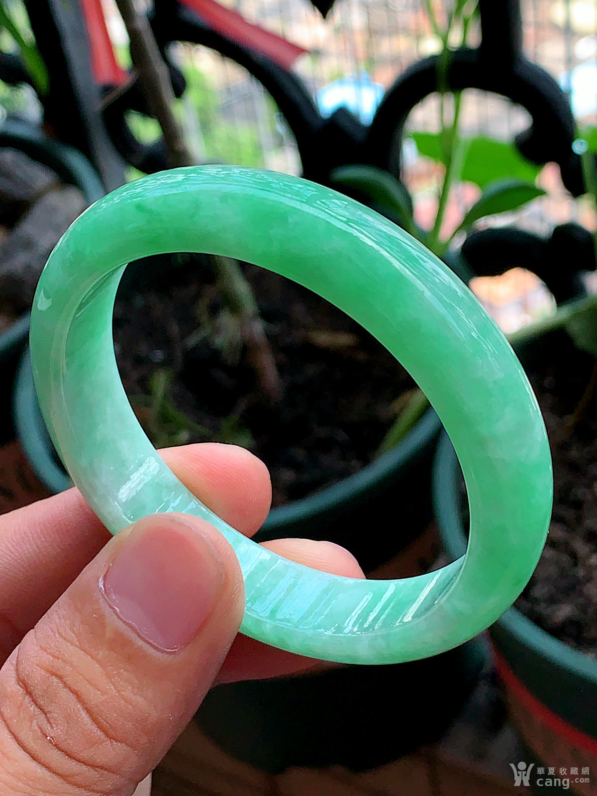 缅甸天然翡翠A货冰润满绿宽边手镯57圈口