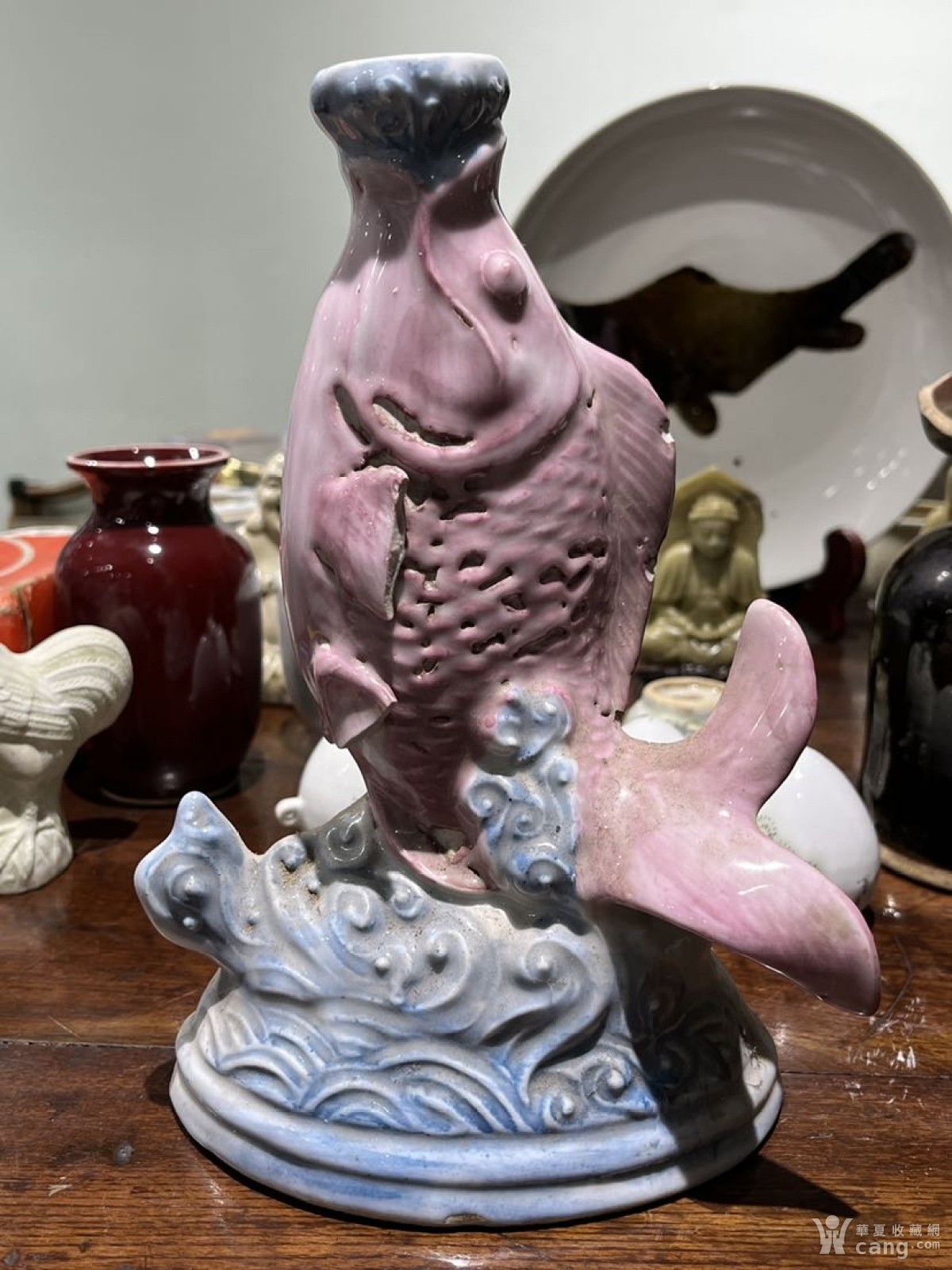567景德镇窑彩瓷塑「年年有余」台灯座,品相不太好,当个花瓶