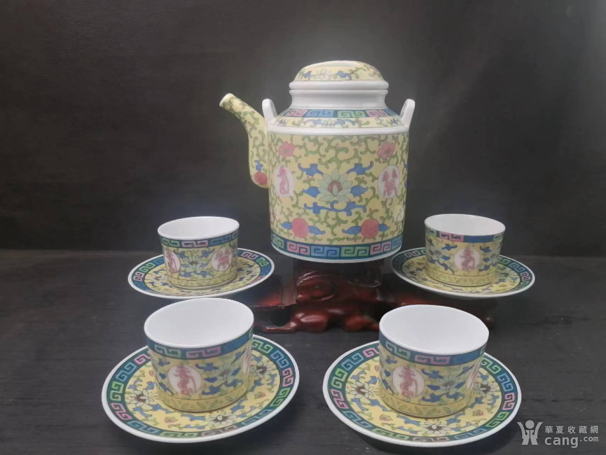 七十年代末R民大H堂用瓷手绘万寿无疆釉下五彩瓷提梁壶一套
