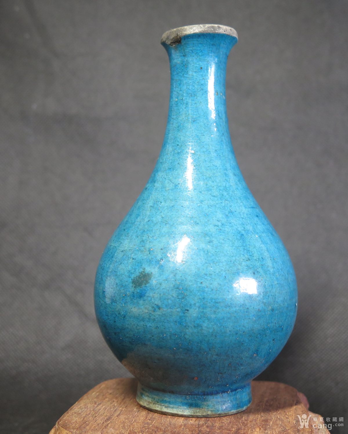 清代雍正孔雀蓝蓝釉玉壶春瓶