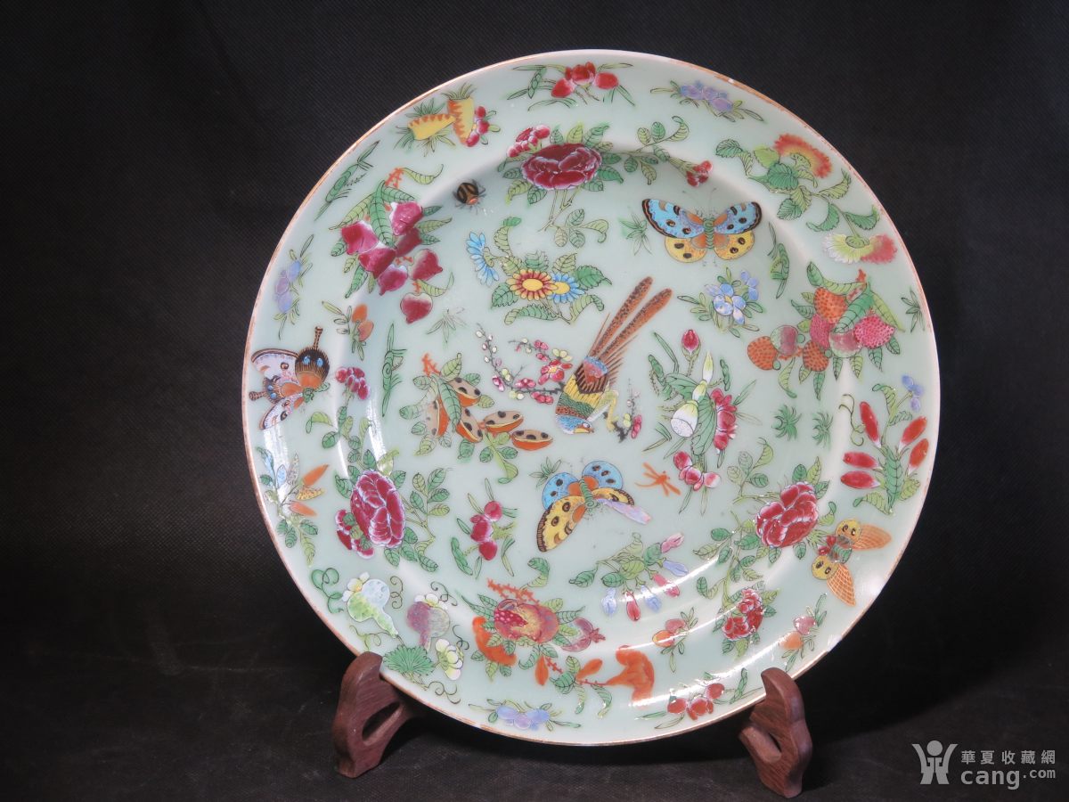 清代24.5cm富贵叠叠花鸟粉彩大盘