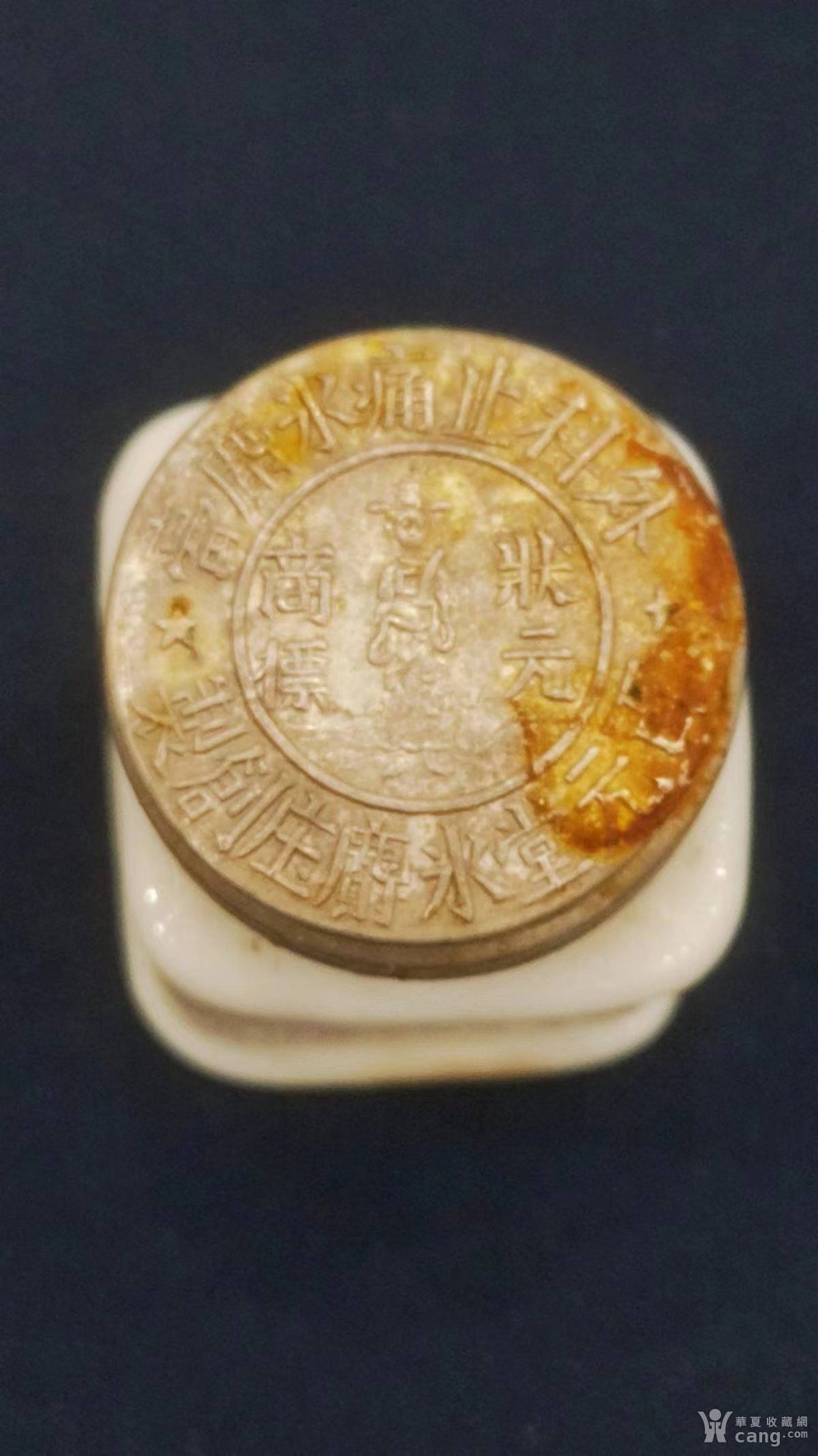 民国(百元堂水麝庄创制状元(人物)商标外科止痛水麝膏)铝盖美