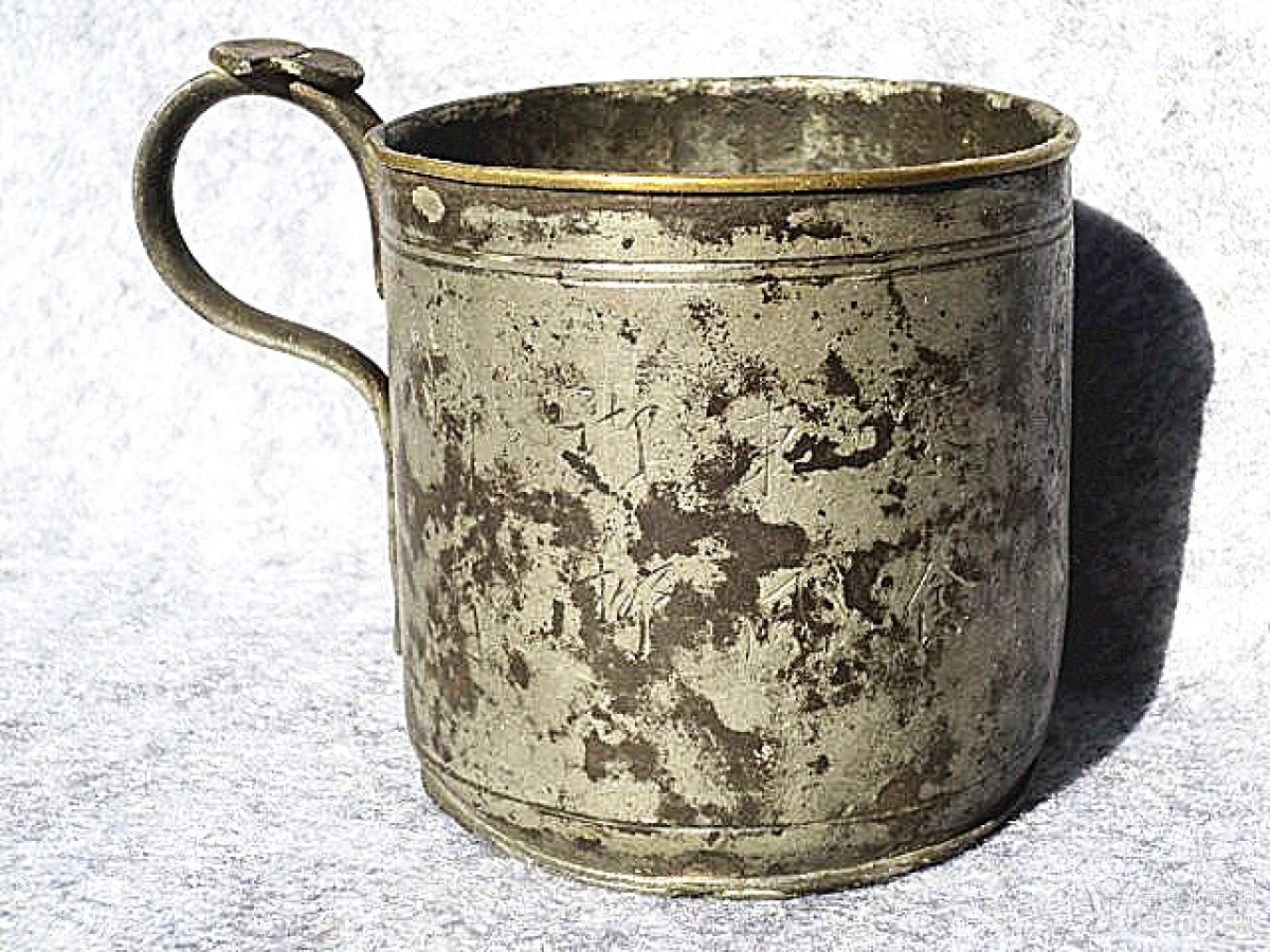 清代铜包口福泰款刻花鸟及文字“寒食东方御柳斜”锡茶杯茶碗杯子
