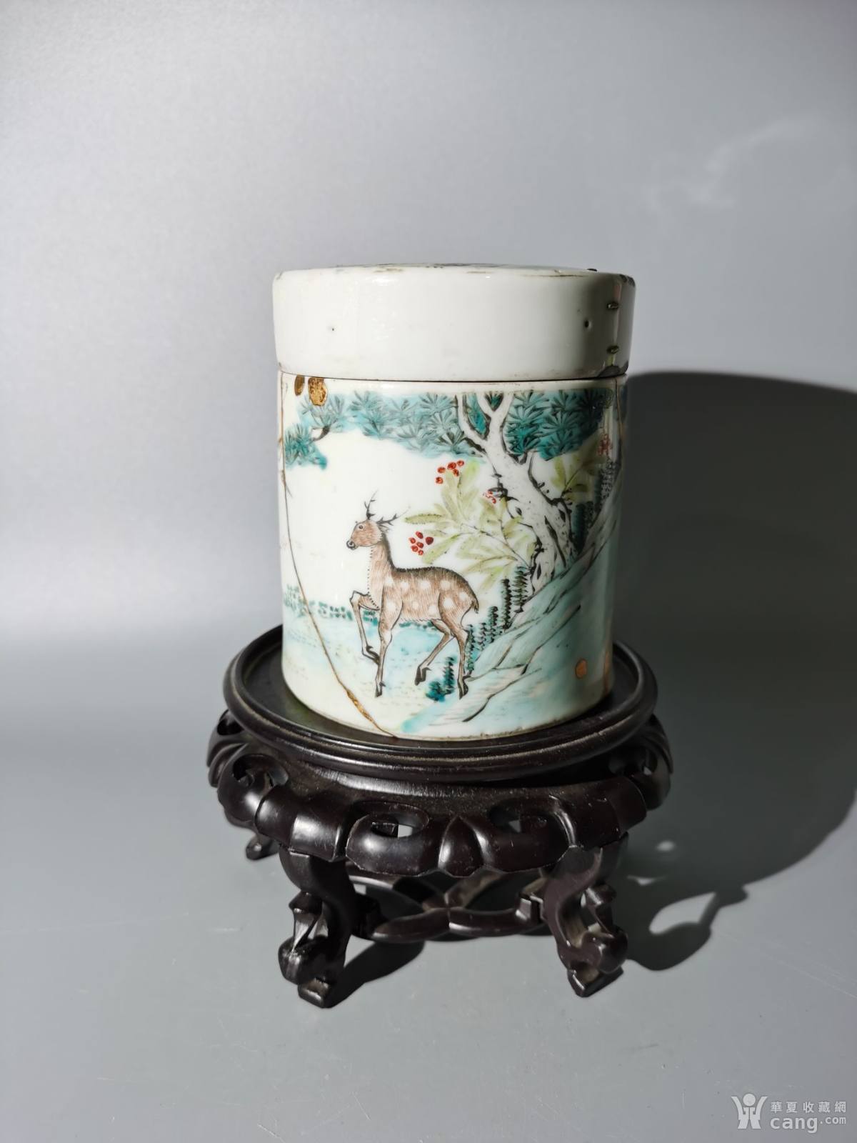 同治浅绛彩鹤鹿同春烟缸
