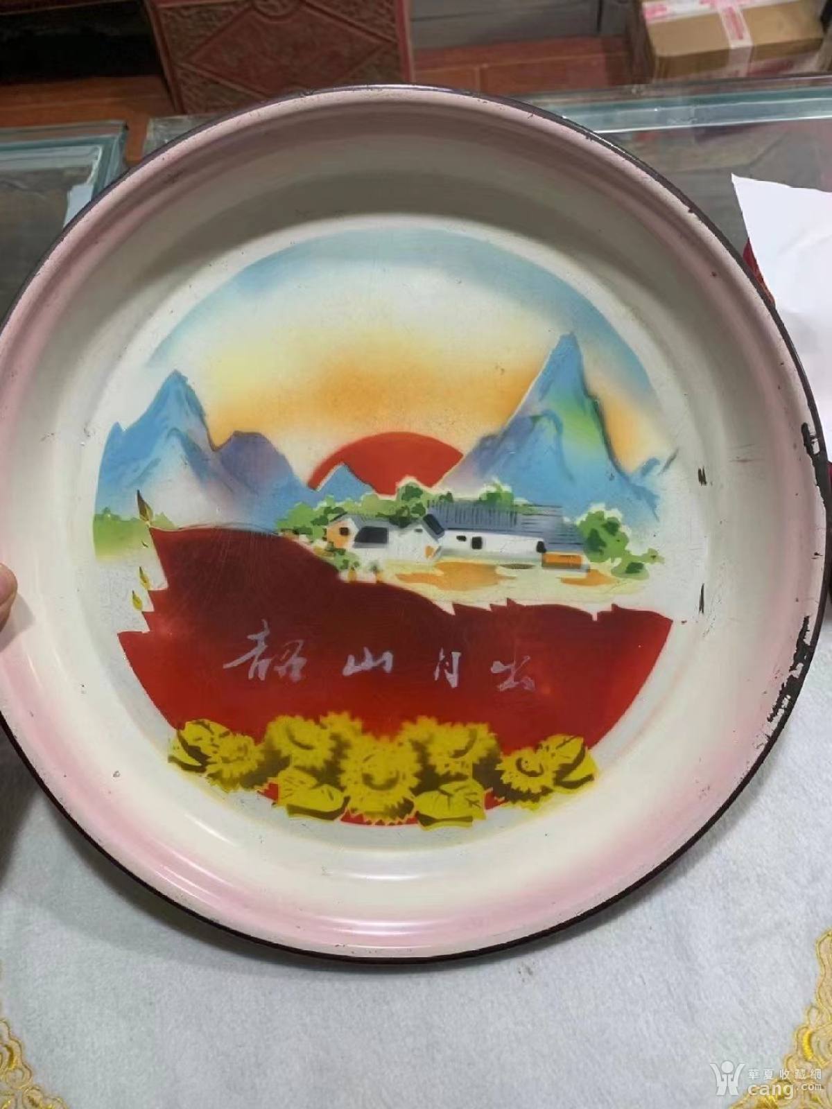 文革韶山日出搪瓷盘
