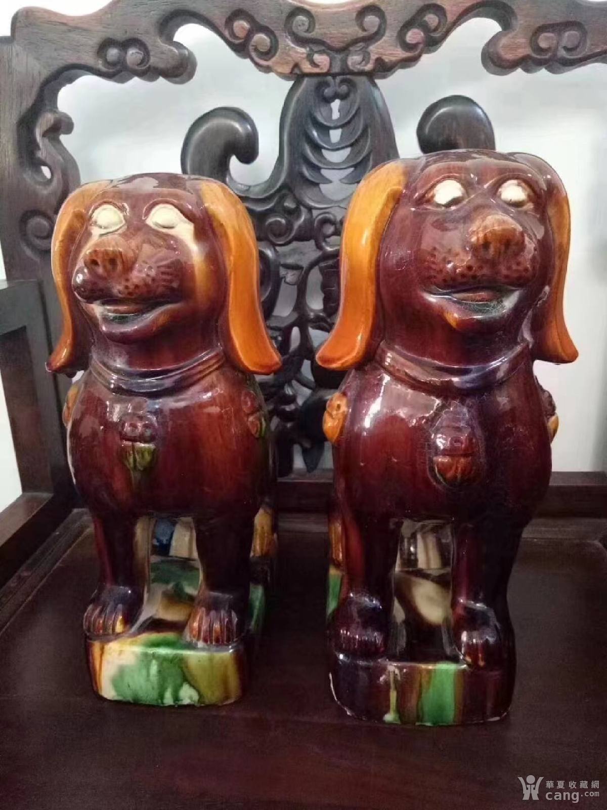 五六十年代超大三彩狮子狗摆件一对