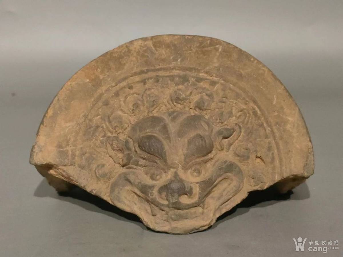 汉代高浮雕兽头瓦,尺寸直径14公分,