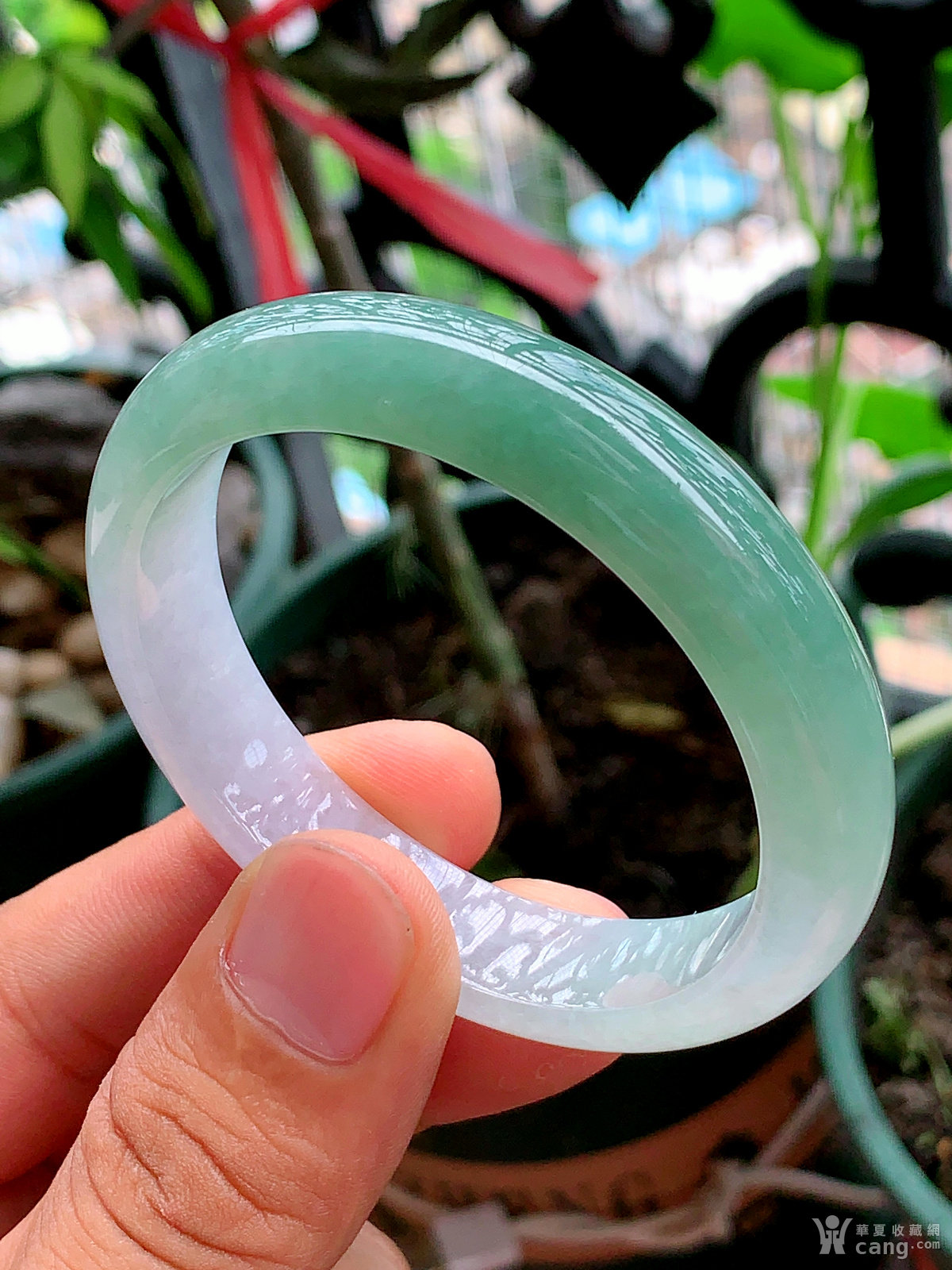 缅甸天然翡翠A货冰透水润飘花宽边手镯53.2圈口
