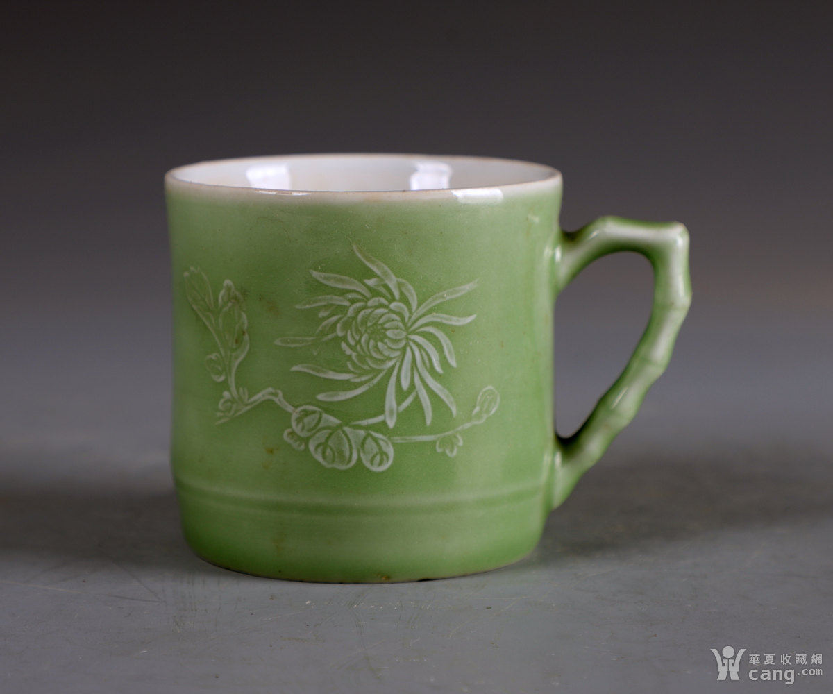70年代建国瓷厂绿堆白茶杯