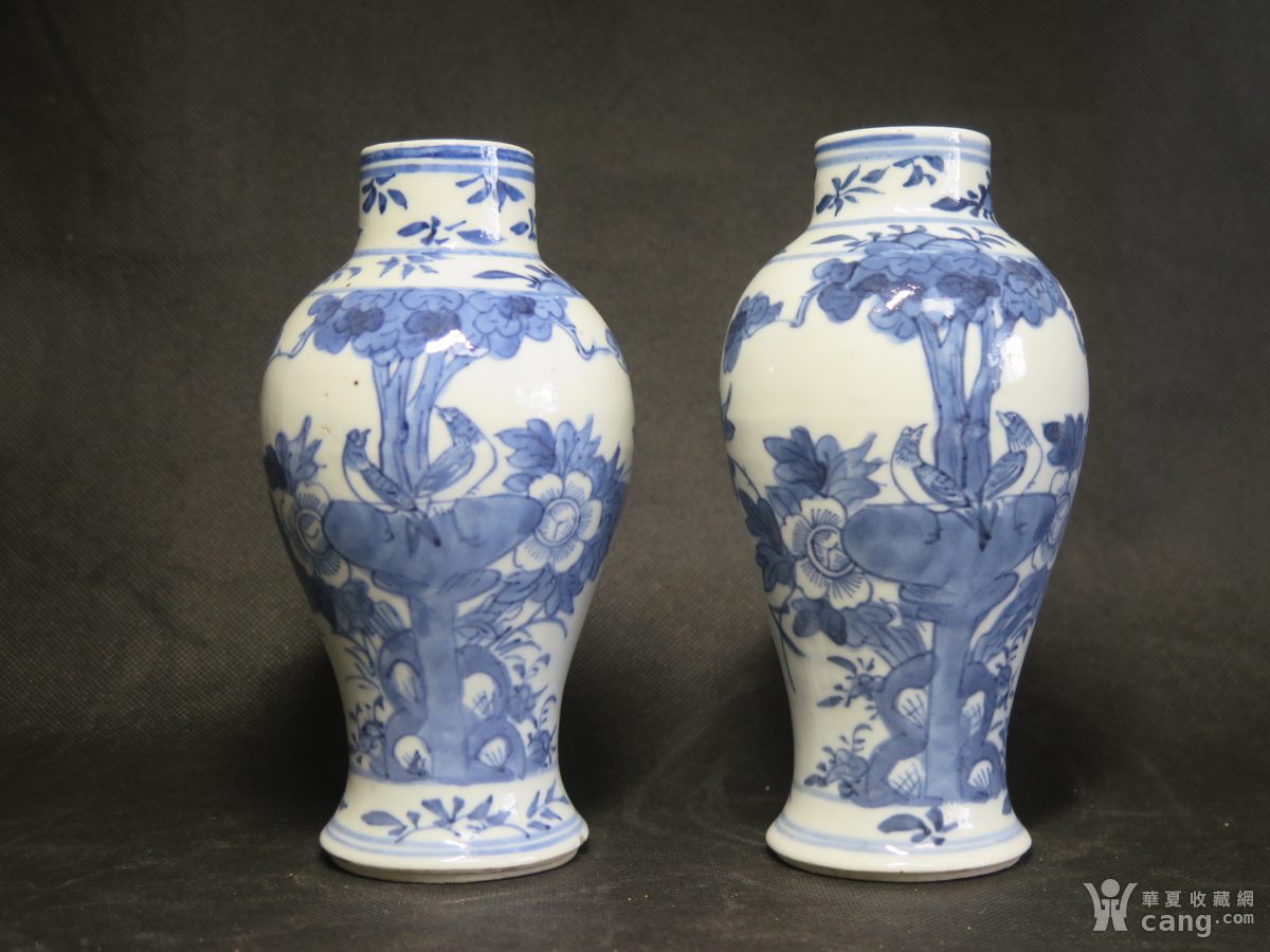 清代洞石花鸟青花瓶一对