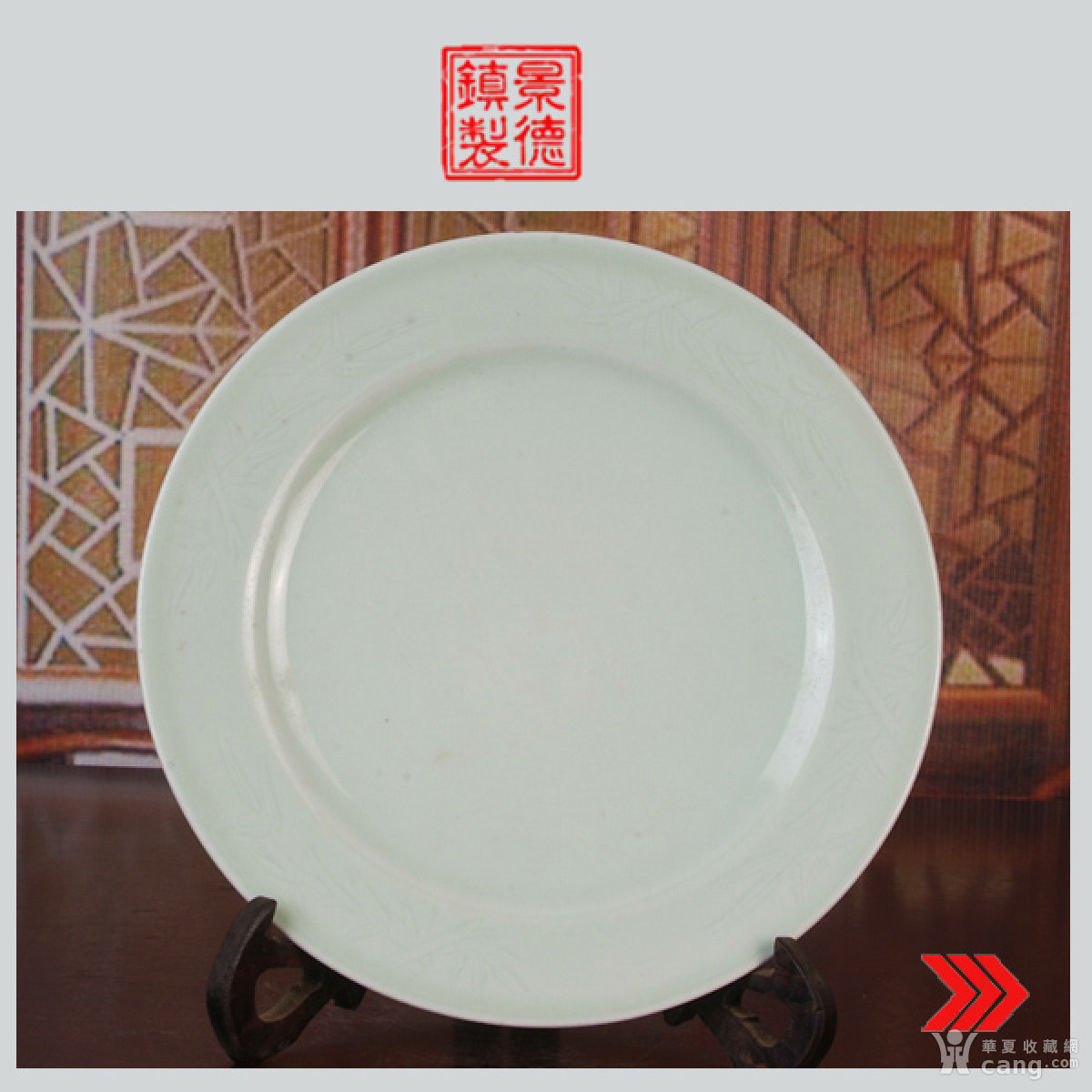 70年代全手工拉坯影青暗刻竹叶图赏盘