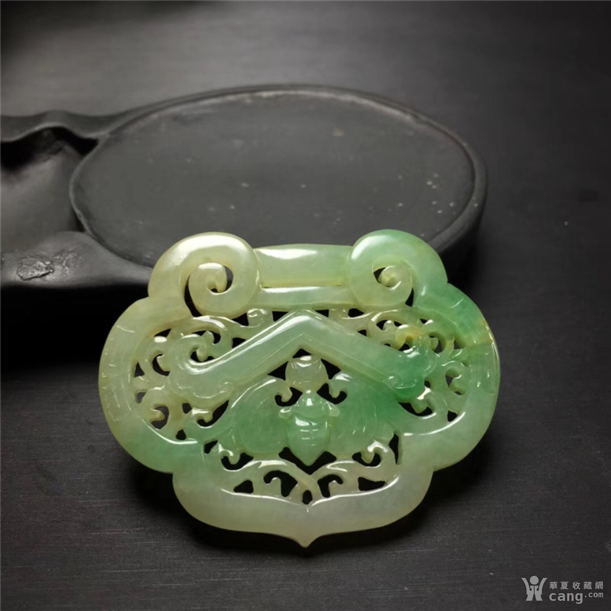 a492民国糯冰种飘阳绿翡翠福庆有余如意锁牌