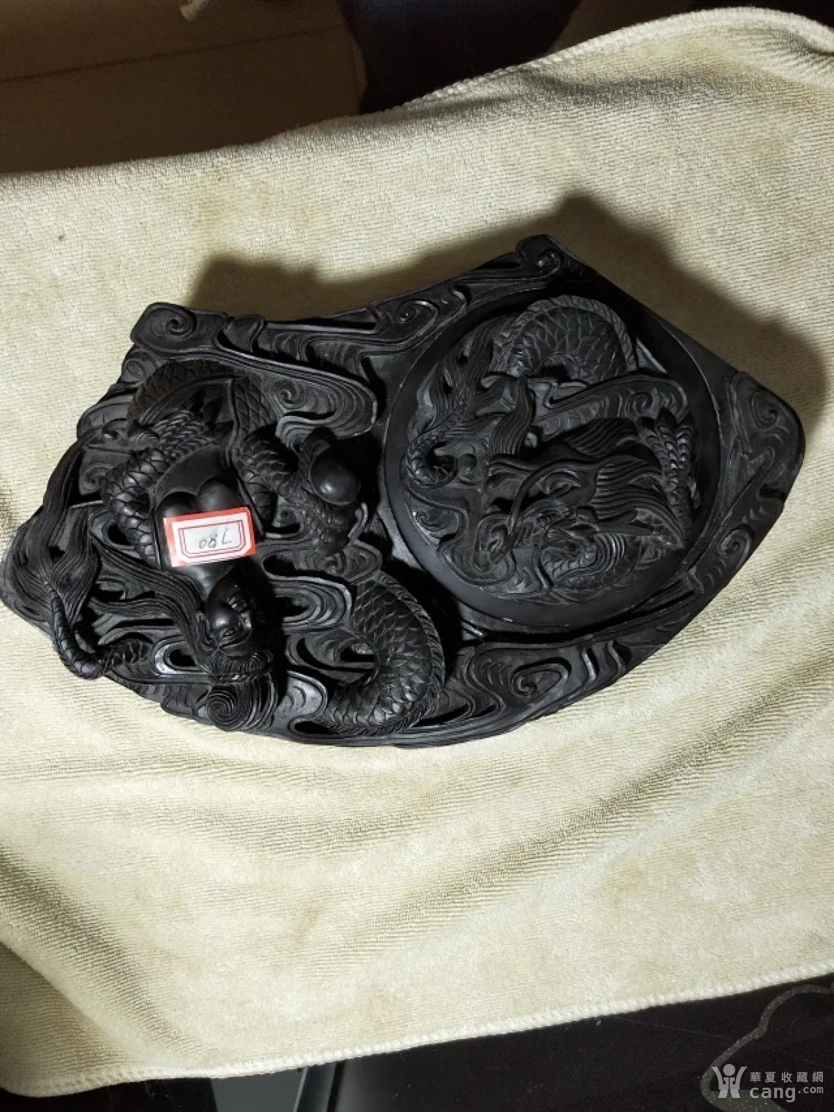 780号扇形手工雕刻易水砚25/13/5Cm。