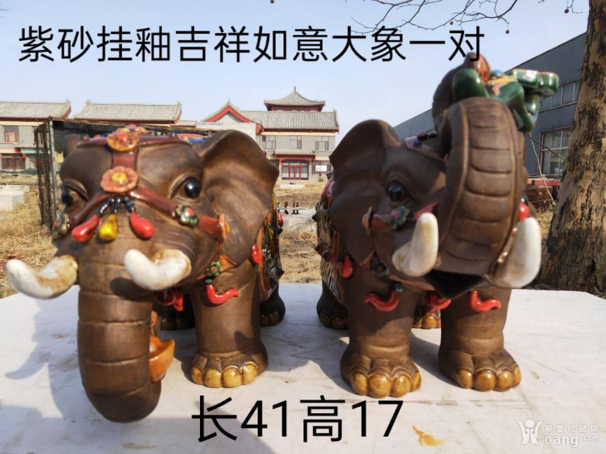 紫砂挂釉大象一对 造型美观,寓意美好,招财进宝,吉祥如意,品